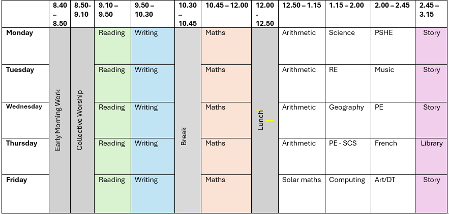 Below, you’ll find a sample copy of our weekly timetable. While we aim to stick to it, occasional changes may happen to accommodate special activities or events.