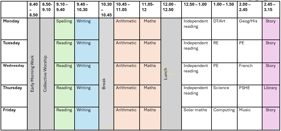 Below, you’ll find a sample copy of our weekly timetable. While we aim to stick to it, occasional changes may happen to accommodate special activities or events.